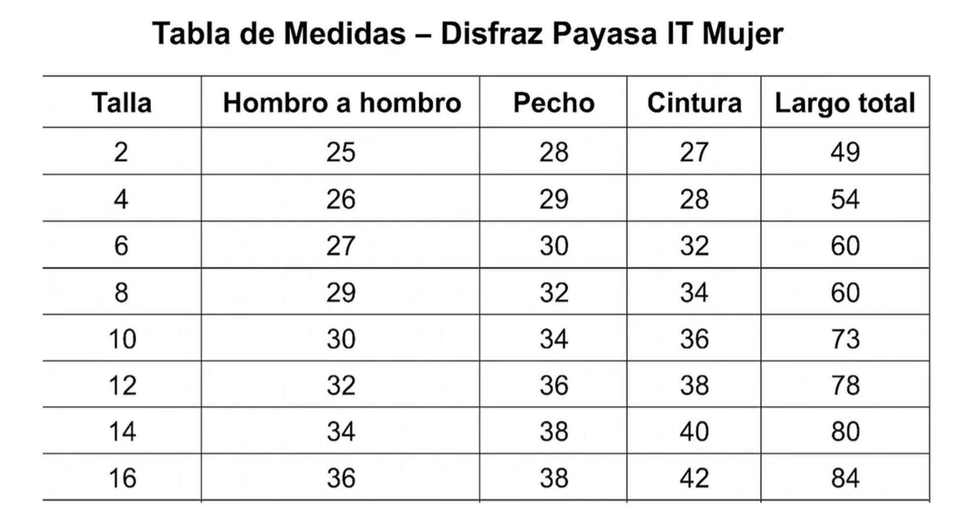 Disfraz Payasa IT Mujer – Tallas 2 a 16