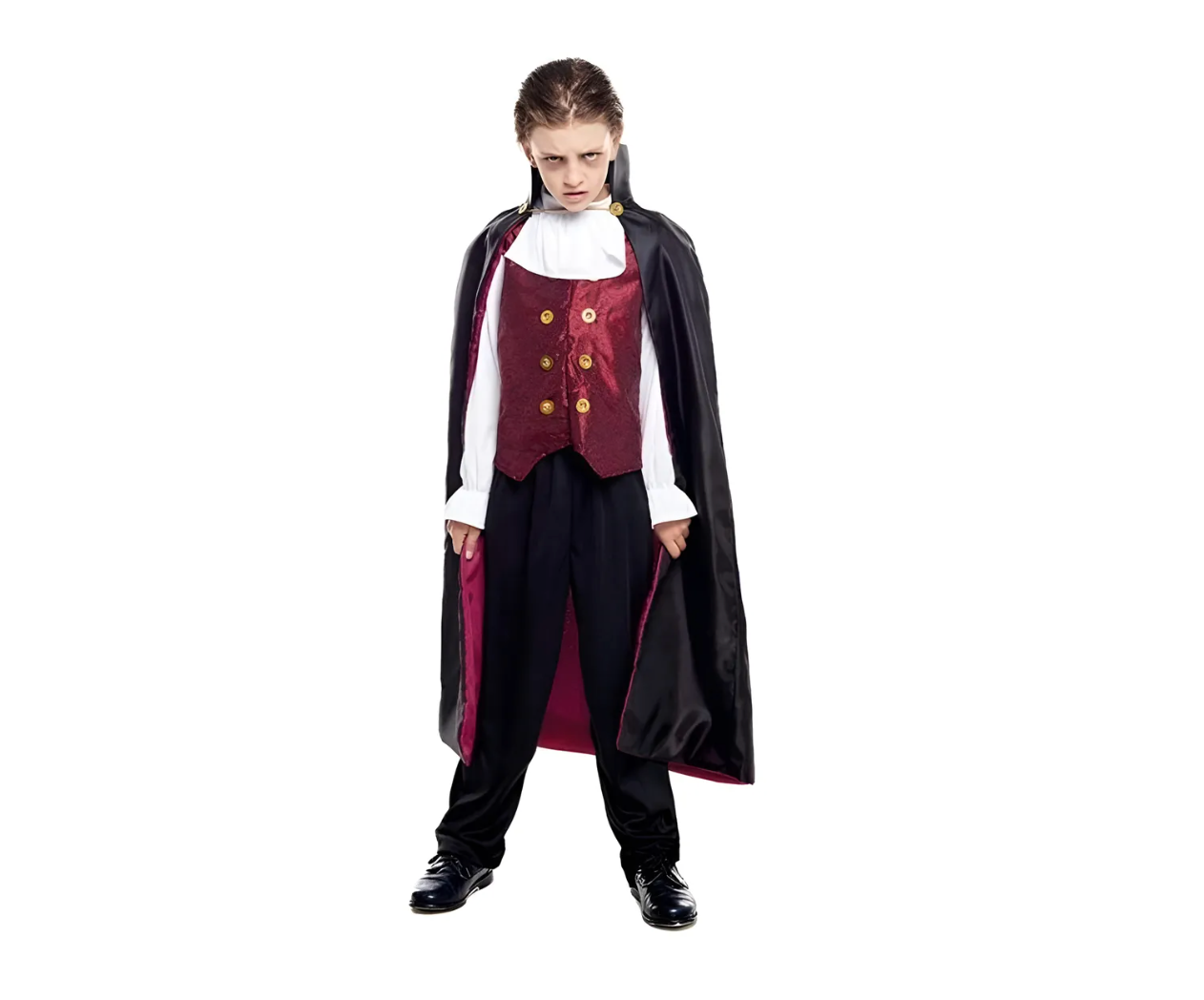 Con este disfraz de vampiro clásico, tu pequeño lucirá como un verdadero conde de la oscuridad, ideal para Halloween, fiestas temáticas o presentaciones escolares 🎃
